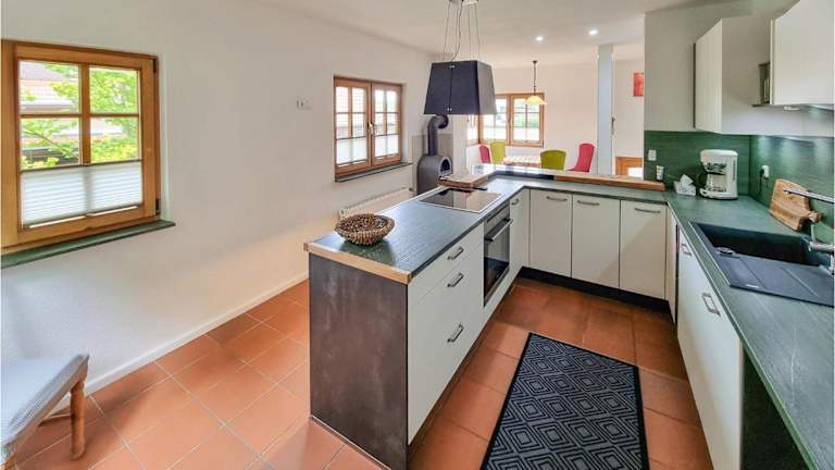 Die Unterkunft verfügt über eine voll ausgestattete Küche mit einem Kühlschrank und einem Geschirrspüler, was die Selbstverpflegung während des Aufenthaltes ermöglicht.