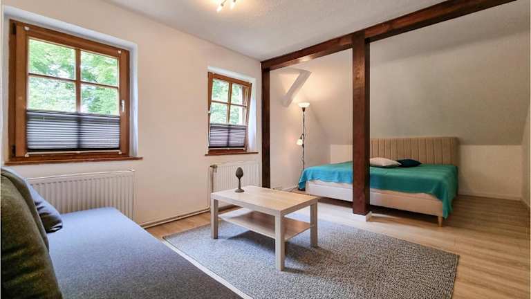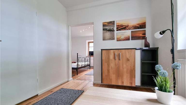 Die Ferienwohnung besteht aus 2 Schlafzimmern und einem Wohnzimmer, was genügend Platz für Gäste bietet.