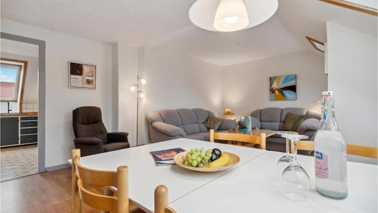 Die Ferienwohnung umfasst zwei Schlafzimmer, ein Wohnzimmer und eine voll ausgestattete Küche mit Kühlschrank. Zudem stehen Internetzugang und Heizung zur Verfügung. Die gesamte Unterkunft ist als Nichtraucherbereich ausgewiesen.