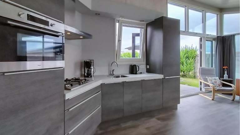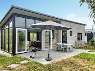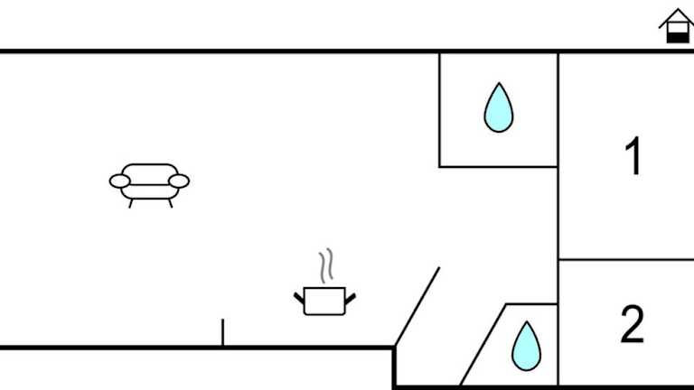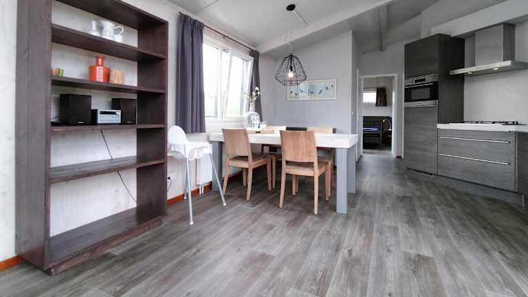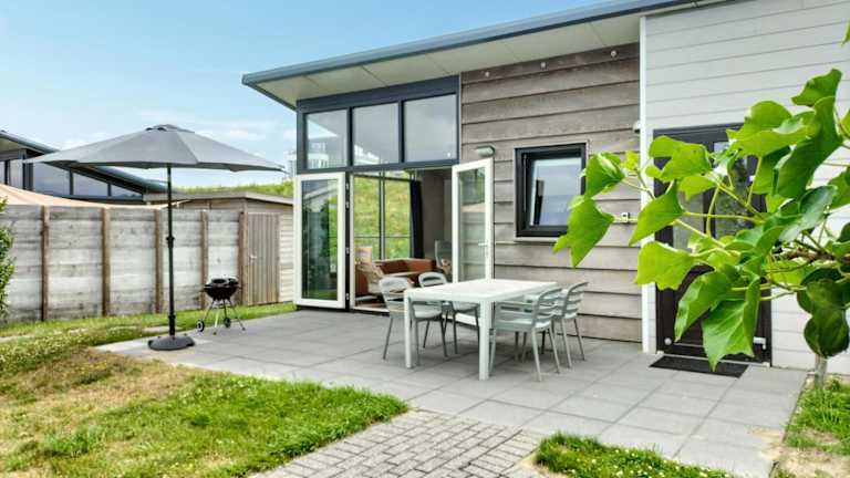 Das Ferienhaus verfügt über zwei Schlafzimmer, ein Wohnzimmer, ein Badezimmer mit Dusche sowie eine voll ausgestattete Küche mit Kühlschrank und Geschirrspüler. Die Ausstattung umfasst auch eine Heizung und Gartenmöbel im Aussenbereich.