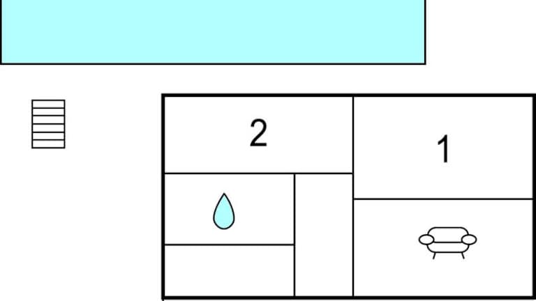 Das Ferienhaus ist mit zwei Schlafzimmern und einem Fernseher ausgestattet. Die Küche verfügt über einen Kühlschrank und eine Mikrowelle.