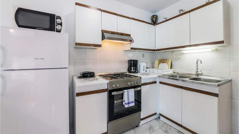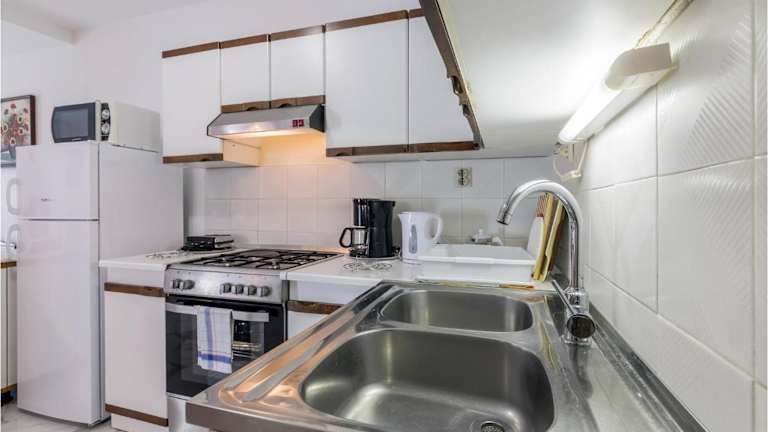Die Küche bietet diverse Möglichkeiten zur Selbstverpflegung, ausgestattet mit Kühlschrank und Kaffeemaschine. Für das leibliche Wohl sorgen die Möglichkeiten in den nahegelegenen Restaurants.