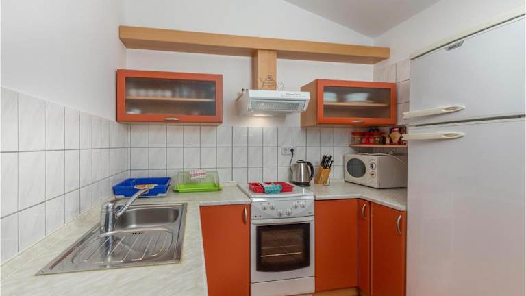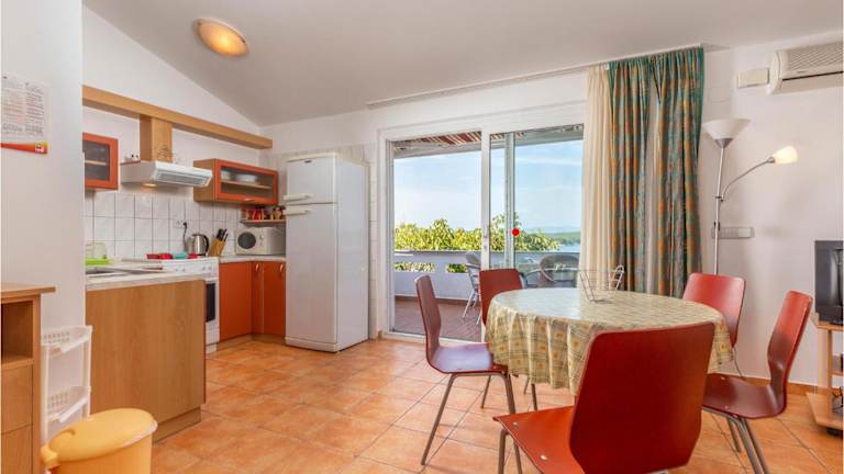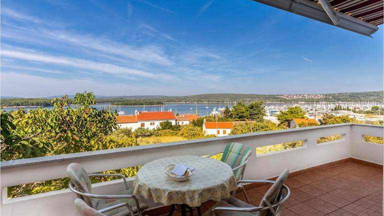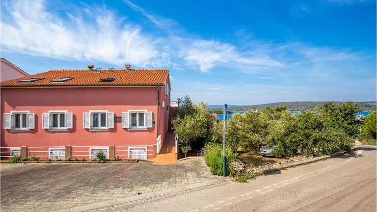 Die Unterkunft befindet sich in Punat mit Blick auf das Meer. In der unmittelbaren Umgebung befinden sich verschiedene Strände wie der Strand Plaža Pila sowie der Strand Punta Debij. Zudem sind kulturelle Sehenswürdigkeiten wie das Kloster Kosljun und die Krk Festung in kurzer Distanz erreichbar. Der Yachthafen Punat liegt nur 600 Meter entfernt.