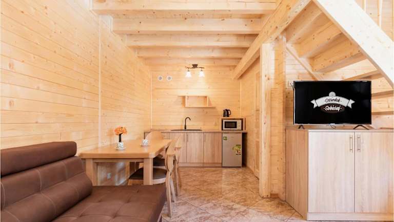 Das Ferienhaus beinhaltet ein Wohnzimmer mit einem TV mit Kabelkanälen, eine voll ausgestattete Küche mit Kühlschrank und Mikrowelle sowie ein Badezimmer mit Dusche. Es ist eine Nichtraucherunterkunft, die Kindern durch Spielgeräte eine Freizeitmöglichkeit bietet.