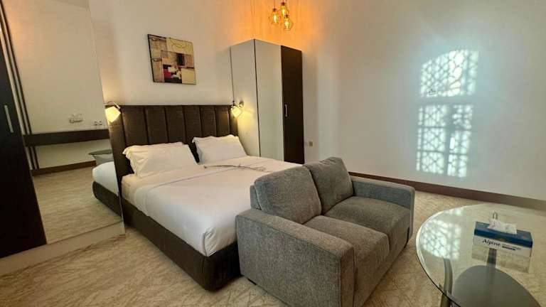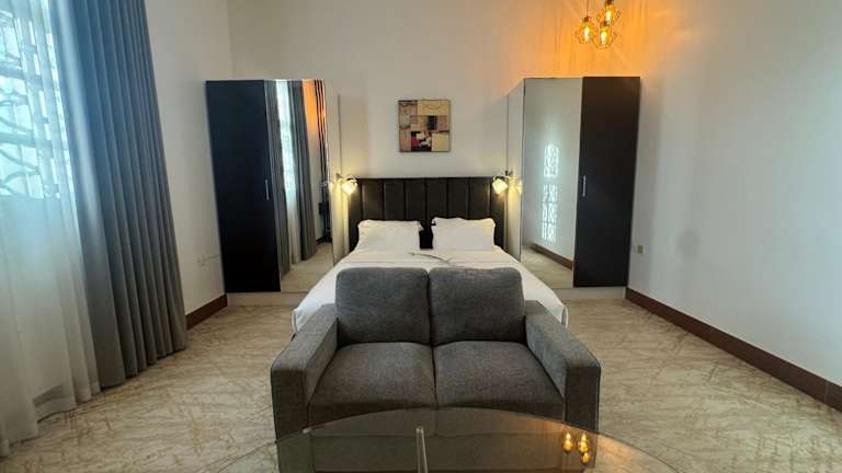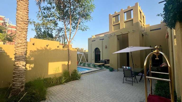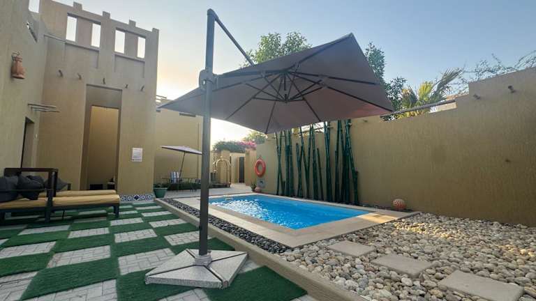 Die 2 Bedroom Villa in Ras Al Khaimah verfügt über einen privaten Swimmingpool und bietet Übernachtungsmöglichkeiten in einer geräumigen, klimatisierten Villa. Zu den Annehmlichkeiten gehören eine Gemeinschaftslounge, Zimmerservice, sowie kostenlose Parkiermöglichkeiten. Die Unterkunft ist eine Nichtraucherunterkunft.