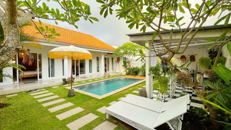 Die Unterkunft 2 Bedroom Villa Kuncara With Private Pool Canggu bietet Übernachtungsmöglichkeiten mit kostenlosem Wifi, Klimaanlage und einer heimeligen Gemeinschaftslounge. Die Villa verfügt über einen eigenen Pool und einen Garten sowie kostenlosen Privatparkiermöglichkeit.