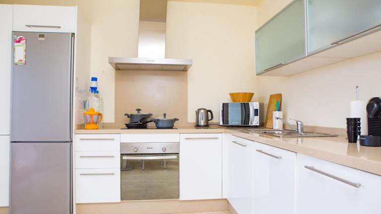 Die Ferienwohnung besteht aus 2 separaten Schlafzimmern und einer voll ausgestatteten Küche. Handtücher und Bettwäsche werden zur Verfügung gestellt. Es gibt zudem einen Safe zur Aufbewahrung von Werten.