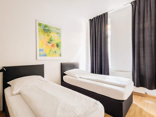 Die Unterkunft 2-room apartment bietet ein Heimeliges Ambiente mit zwei Schlafzimmern, einer modernen Küche sowie einem Badezimmer. Die Rezeption ist rund um die Uhr besetzt und die Mitarbeitenden sprechen Deutsch und Englisch. Besondere Anlässe wie Junggesellenabschiede sind nicht gestattet und die Mindestalter für Gäste beträgt 18 Jahre.