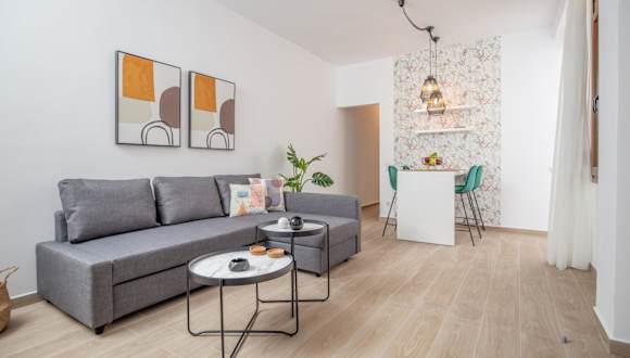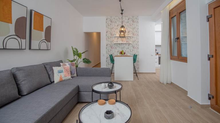 Die Unterkunft 2 Wonderful Suites with Sea View - Memories Suites bietet eine moderne und klimatisierte Ferienwohnung mit einer Terrasse und einem Balkon. Die Gäste geniessen eine heimelige Atmosphäre in den grosszügigen Räumlichkeiten und haben Zugang zu einem Privatparkplatz sowie kostenlosem Wifi.