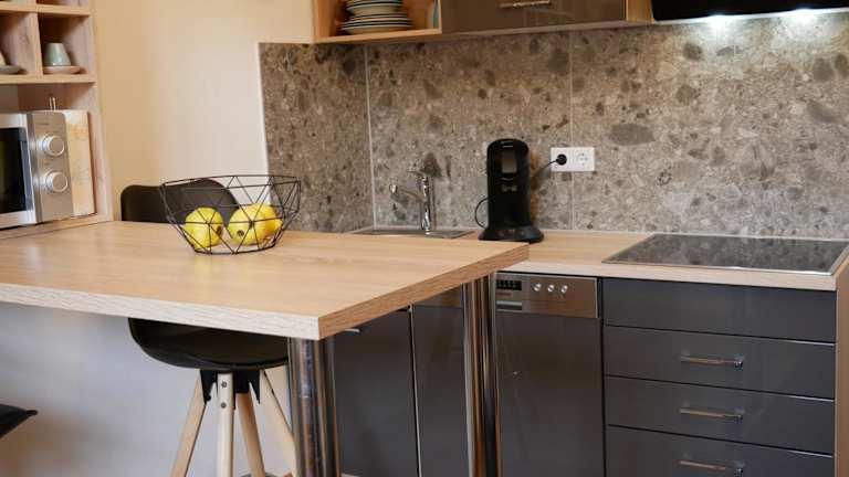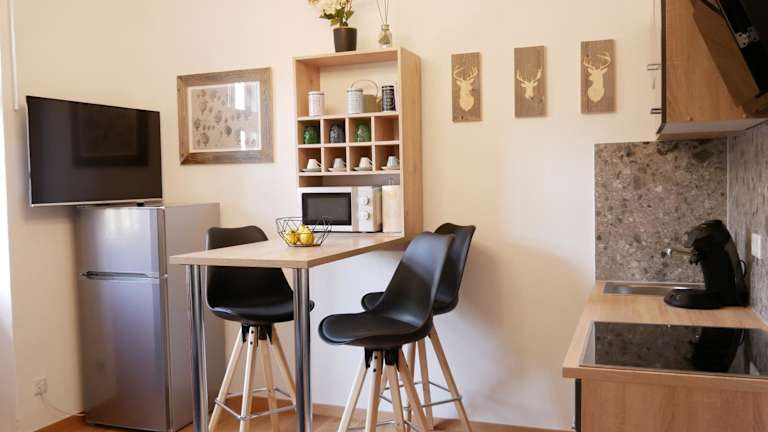 Die Ferienwohnung umfasst ein Schlafzimmer, ein Badezimmer sowie einen Essbereich. Zur Ausstattung gehören Bettwäsche, Handtücher, ein Flachbild-TV, eine voll ausgestattete Küche und ein Balkon mit Blick auf die Berge. Die Unterkunft bietet kostenloses WLAN und einen Privatparkplatz, der inbegriffen ist. Es handelt sich um eine Nichtraucherunterkunft.