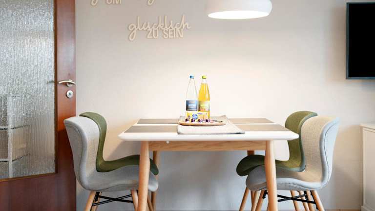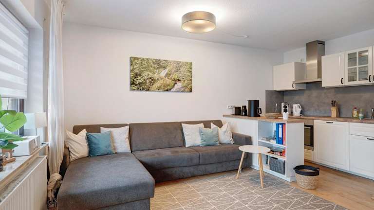 Die Ferienwohnung besteht aus 1 Schlafzimmer, einem Wohnzimmer und einer voll ausgestatteten Küche mit Kühlschrank und Kaffeemaschine. Das Badezimmer ist mit einer Badewanne und kostenlosen Pflegeprodukten ausgestattet. Handtücher und Bettwäsche werden zur Verfügung gestellt.