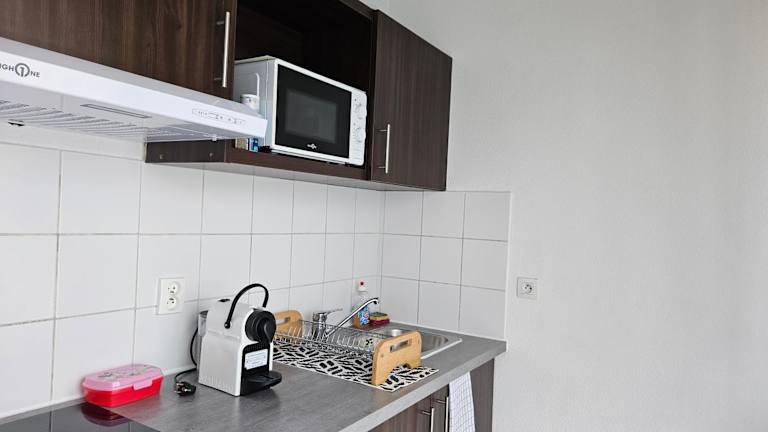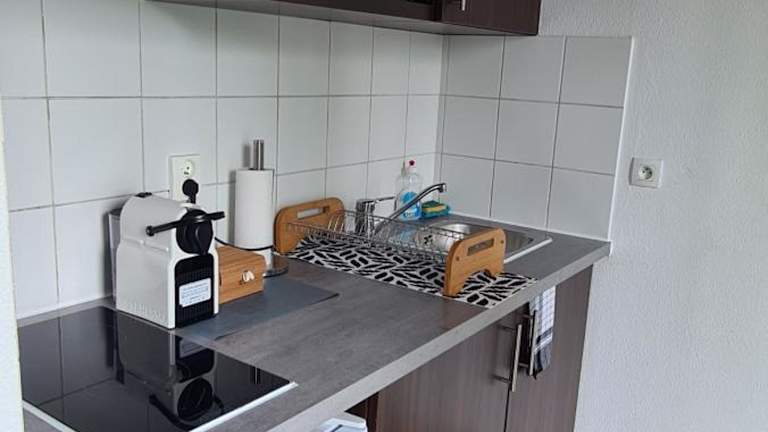 Die Ferienwohnung besteht aus einem separaten Schlafzimmer, einer voll ausgestatteten Küche, die Kühlschrank und Mikrowelle umfasst, und einem Badezimmer. Handtücher und Bettwäsche werden bereitgestellt.