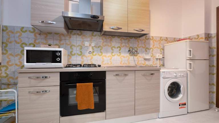 Die Ferienwohnung mit Klimaanlage umfasst ein Schlafzimmer sowie ein Wohnzimmer. Die voll ausgestattete Küche ist mit einem Kühlschrank und Wasserkocher ausgestattet. Zudem stehen ein Badezimmer mit Bidet und Dusche sowie Handtücher und Bettwäsche zur Verfügung.