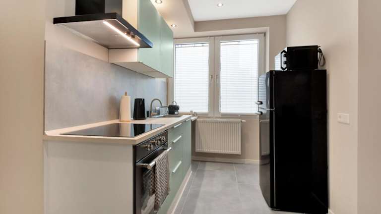 Die Unterkunft verfügt über eine gut ausgestattete Küche mit Kühlschrank, Ofen, Mikrowelle, Herdplatte, Toaster, Kaffeemaschine und Wasserkocher, was die Zubereitung von eigenen Mahlzeiten ermöglicht.