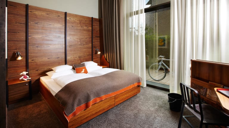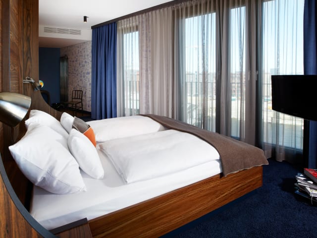 Im Stil einer Seemanns-Koje in einer fremden Stadt sind die Zimmer des 25hours Hotels HafenCity warm und gemütlich eingerichtet. Elemente und Materialen aus der Schifffahrt werden mühelos kombiniert - zusammengehalten von Seemannsgarn.