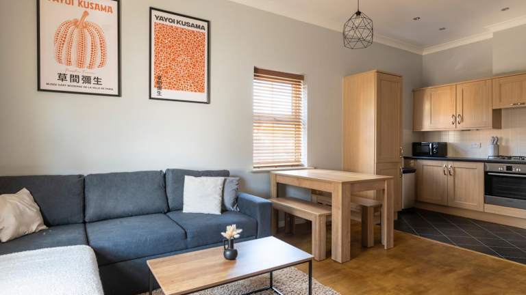 Die Ferienwohnung besteht aus 2 Schlafzimmern mit Super King Size Betten, einem heimeligen Wohnzimmer und einer voll ausgestatteten Küche mit Kühlschrank und Wasserkocher. Es gibt 2 Badezimmer mit Dusche und kostenlosen Pflegeprodukten sowie einen Flachbild-TV.