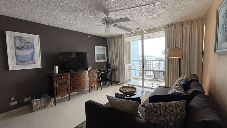 Die Unterkunft 2BR Condo at Isla Verde Beach bietet Wohneinheiten mit kostenlosem Wifi, Klimaanlage sowie Einrichtungen wie einer Gemeinschaftslounge und einer Bar. Zu den Annehmlichkeiten gehören auch ein Balkon mit Stadtblick, ein Sitzbereich, ein Kabel Flachbild-TV und eine voll ausgestattete Küche.