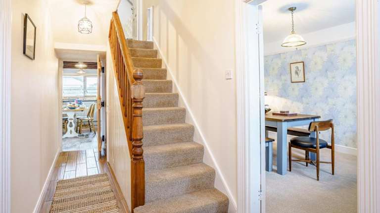 Das Ferienhaus bietet drei Schlafzimmer, eine eigene Küche, eine Waschmaschine sowie ein Badezimmer. Die Unterbringung ist für Familien geeignet und ermöglicht das Mitbringen von einem Haustier.