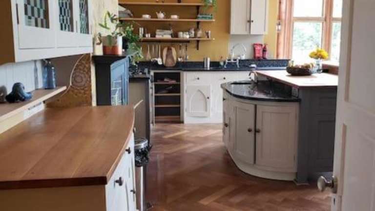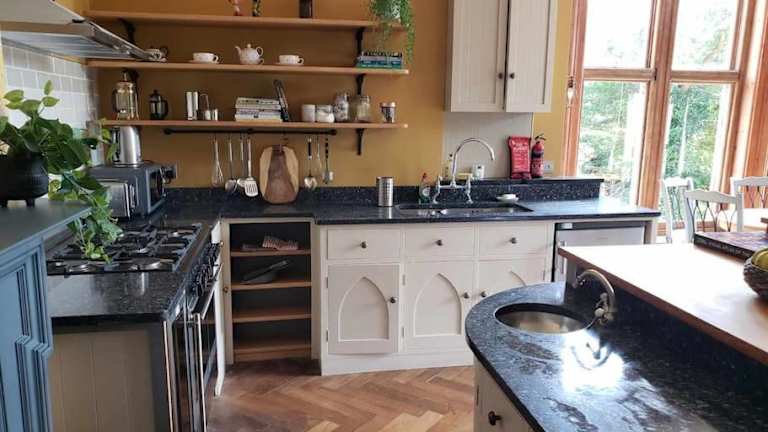 Die Unterkunft verfügt über eine voll ausgestattete Küche und einen Essbereich.