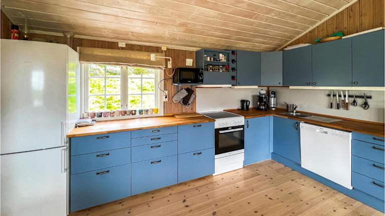Die voll ausgestattete Küche des Ferienhauses ermöglicht den Gästen die Zubereitung eigener Mahlzeiten. Sie ist mit einem Kühlschrank, einem Geschirrspüler, einer Waschmaschine, einem Ofen und einer Herdplatte ausgestattet. Somit sind Gäste in der Lage, ihre kulinarischen Wünsche selbst zu erfüllen.