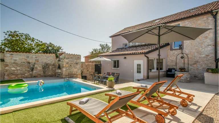Das Ferienhaus bietet eine heimelige Atmosphäre und umfasst 3 Schlafzimmer sowie 3 Badezimmer. Es ist klimatisiert und verfügt über eine voll ausgestattete Küche mit Kühlschrank und Geschirrspüler. Die Unterkunft bietet ausserdem einen eigenen Pool, der von den Gästen genutzt werden kann.