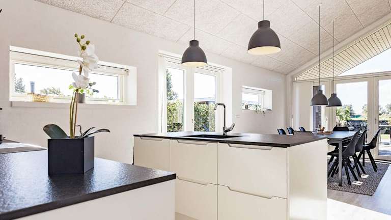 Das Ferienhaus verfügt über 4 Schlafzimmer und ein Wohnzimmer mit TV. Eine voll ausgestattete Küche ist vorhanden, die einen Kühlschrank und einen Geschirrspüler umfasst. Zudem sind 2 Badezimmer mit Badewanne oder Dusche vorhanden.