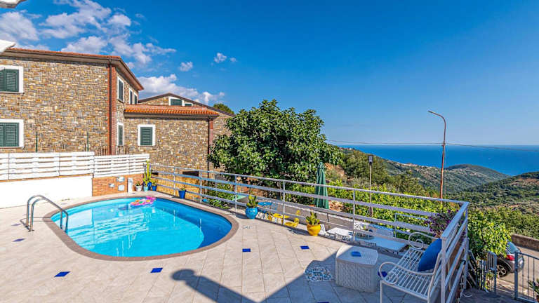 Gäste können den eigenen Aussenpool und die Sonnenterrasse nutzen, um entspannende Stunden im Freien zu verbringen.