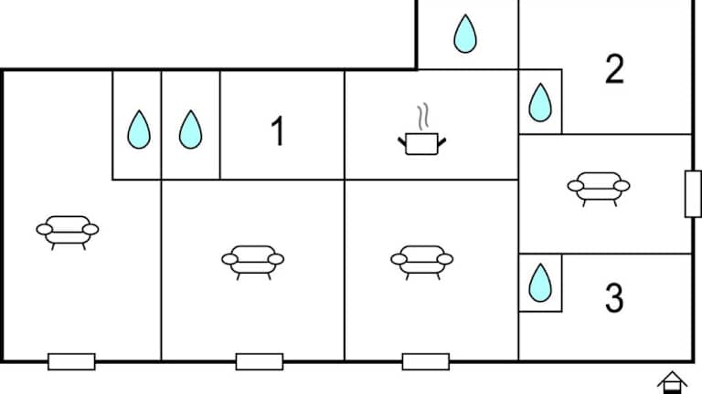 Das Ferienhaus verfügt über 3 Schlafzimmer, einen TV und eine komplett ausgestattete Küche mit Kühlschrank und Geschirrspüler.