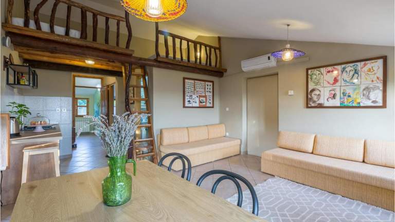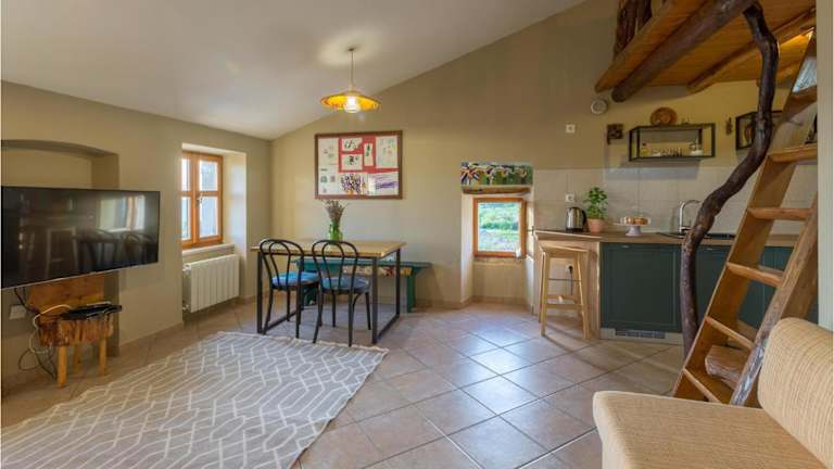 Zu den Freizeitmöglichkeiten gehört ein Aussenpool, Tischtennis und verschiedene Outdoorspielgeräte für Kinder. Zudem stehen Gartenmöbel bereit, um die Umgebung zu geniessen.