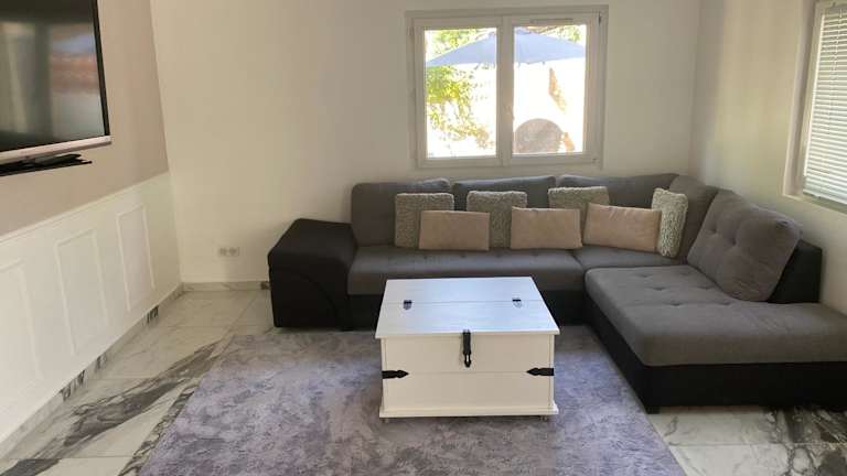 Die Unterkunft ist eine klimatisierte Ferienwohnung im Erdgeschoss mit Gartenblick und Zugang zu einem Aussenpool sowie einem heimeligen Garten. Es besteht die Möglichkeit, kostenfreies Privatparkieren in Anspruch zu nehmen. Gäste haben den Vorteil, dass sie verschiedene Annehmlichkeiten wie eine Terrasse und eine Bar in der Unterkunft nutzen können.