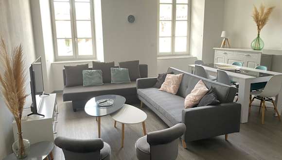 Die Unterkunft 3 pièces spacieux plein centre, parking, clim, terrasse, jardin bietet eine großzügige Ferienwohnung, die mit verschiedenen Annehmlichkeiten ausgestattet ist. Dazu gehören eine Terrasse mit Stadtblick, ein Garten, kostenfreies WLAN und ein kostenloser Privatparkplatz. Die Unterkunft wird von einem privaten Gastgeber geführt und es gelten spezifische Hausregeln.