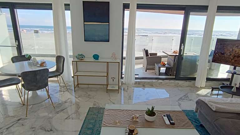 Die Ferienwohnung 3 Rooms Sunrise Marble Apart - Panoramic Seaview - Casa del Mar bietet einen herrlichen Meerblick sowie eine gemütliche und heimelige Atmosphäre. Die Unterkunft verfügt über eine Terrasse und bietet kostenlosen Privatparkplatz sowie kostenloses Wifi.