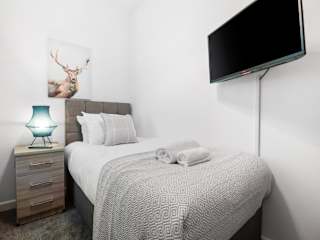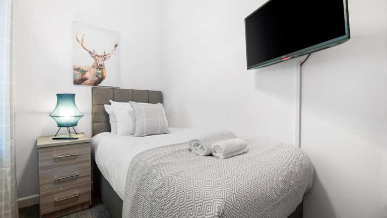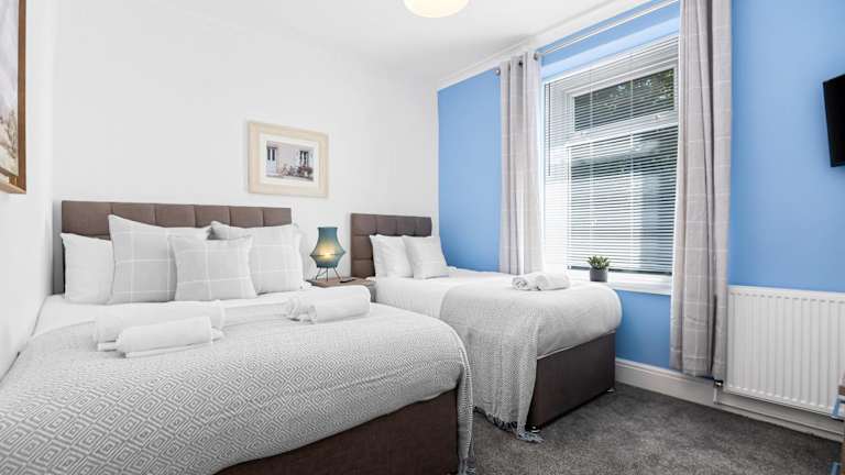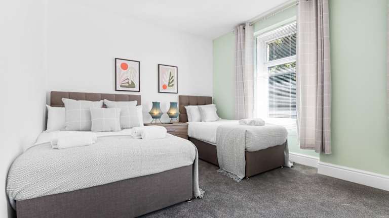 Die Unterkunft 3 Triple Rooms - Parking - Smart TVs - Work Stays bietet Übernachtungsmöglichkeiten in Form einer Ferienwohnung. Sie verfügt über einen Garten und beinhaltet eine voll ausgestattete Küche sowie ein Wohnzimmer. Ausserdem sind verschiedene Sicherheitsmassnahmen wie Videoüberwachung und kontaktloser Check-in vorhanden.