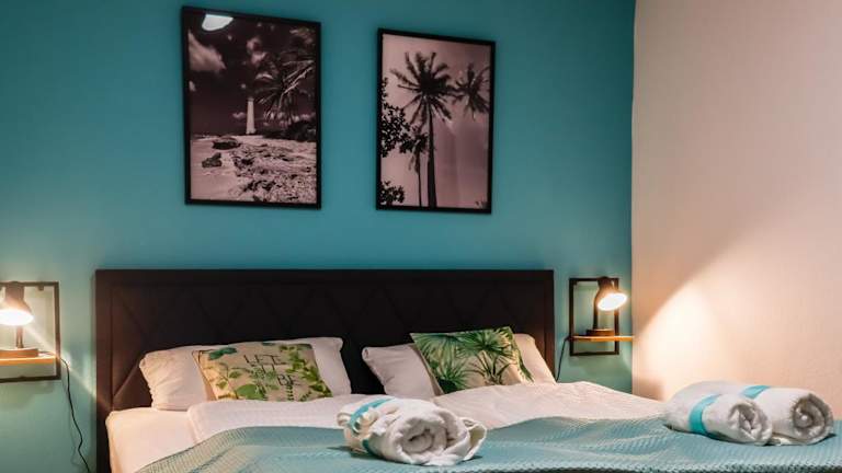 Das Apartment besteht aus 2 Schlafzimmern, einem Wohnzimmer sowie einer voll ausgestatteten Küche, die mit einem Kühlschrank und einer Kaffeemaschine ausgestattet ist. Ein Badezimmer mit Dusche und kostenlosen Pflegeprodukten ist ebenfalls vorhanden. Handtücher und Bettwäsche werden bereitgestellt.