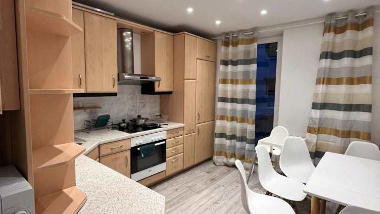 Die 3 Zimmer Wohnung Friedrich Ebert Strasse bietet eine helle und einladende Atmosphäre mit einem Balkon und einer Terrasse. Diese Nichtraucherunterkunft ist ideal für Familien und verfügt über zwei Schlafzimmer sowie ein Wohnzimmer. Der Check-in erfolgt zwischen 14:00 und 18:00 Uhr, während der Check-out von 08:00 bis 10:00 Uhr möglich ist. Zudem stellt die Unterkunft sicher, dass alle Hygienerichtlinien befolgt werden, um die Gesundheit der Gäste zu gewährleisten.