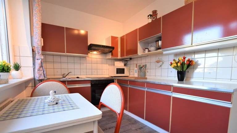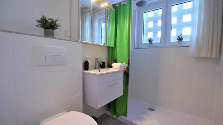 Die Ferienwohnung besteht aus zwei Schlafzimmern, einem Wohnzimmer und einem Badezimmer mit Dusche und Haartrockner. Zusätzliche Bequemlichkeit erhalten die Gäste durch die Möglichkeit, Handtücher und Bettwäsche gegen Aufpreis in Anspruch zu nehmen.