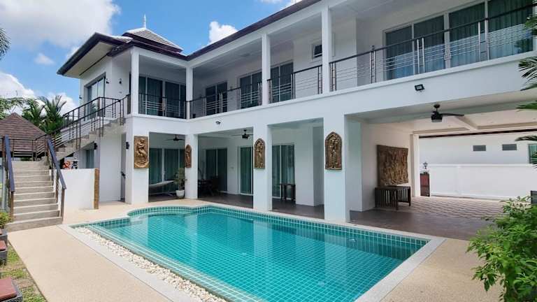 Die 4 Bedroom Villa Kamala Beach Phuket bietet Übernachtungsmöglichkeiten in einer heimeligen Umgebung mit einem Aussenpool und einer Terrasse. Die Villa ist ideal für Familien oder Gruppen und umfasst einen eigenen Garten.
