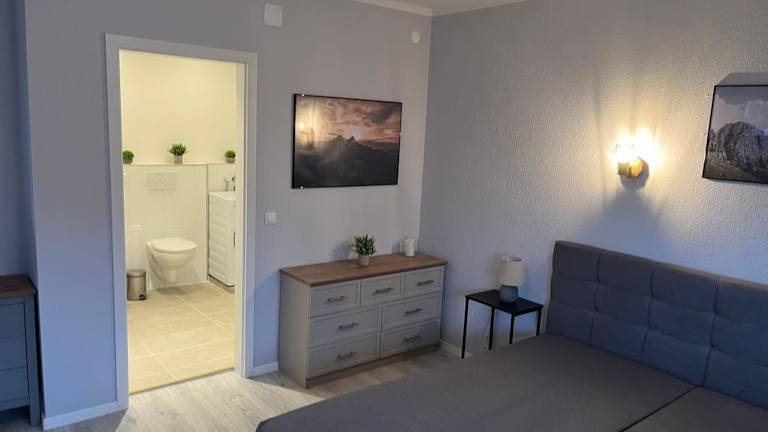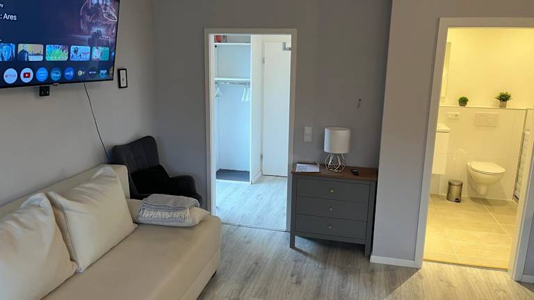 Das Appartement verfügt über ein Schlafzimmer und ein Badezimmer sowie über eine voll ausgestattete Küche. Es sind Bettwäsche, Handtücher und ein Flachbild-TV vorhanden.