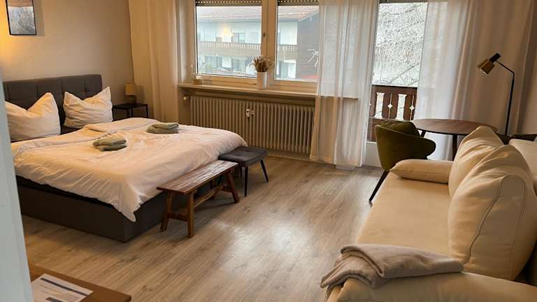 Das 4-Bett-Appartement am Golfplatz befindet sich in Grassau, in der Nähe des Golfplatzes mit Blick auf den Garten. Die Umgebung bietet zahlreiche Freizeitmöglichkeiten wie Skifahren und Wandern.