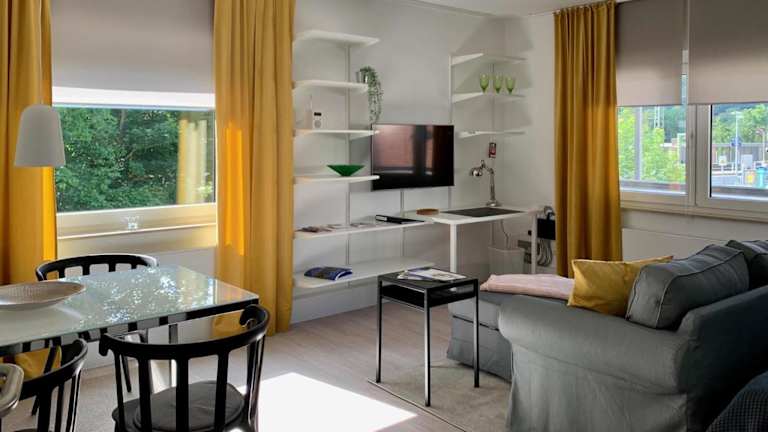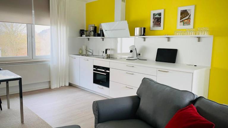 Die Studios sind ausgestattet mit einem Flachbild-TV sowie einem eigenen Badezimmer mit Dusche und kostenlosen Pflegeprodukten. Die Küchenzeile verfügt über einen Kühlschrank, Geschirrspüler, Ofen, Herdplatte, Toaster, Kaffeemaschine und Wasserkocher. Bettwäsche, Handtücher und Wäsche werden nach den Richtlinien der örtlichen Behörden gewaschen.
