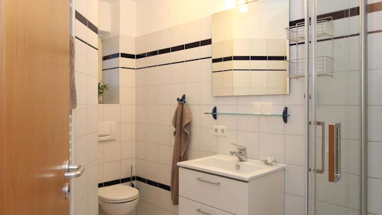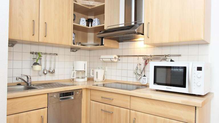 Die Ferienwohnung verfügt über ein Schlafzimmer, eine gut ausgestattete Küche mit Kühlschrank und Geschirrspüler, ein Wohnzimmer sowie einen TV, was zu einer angenehmen Bequemlichkeit während des Aufenthalts beiträgt.
