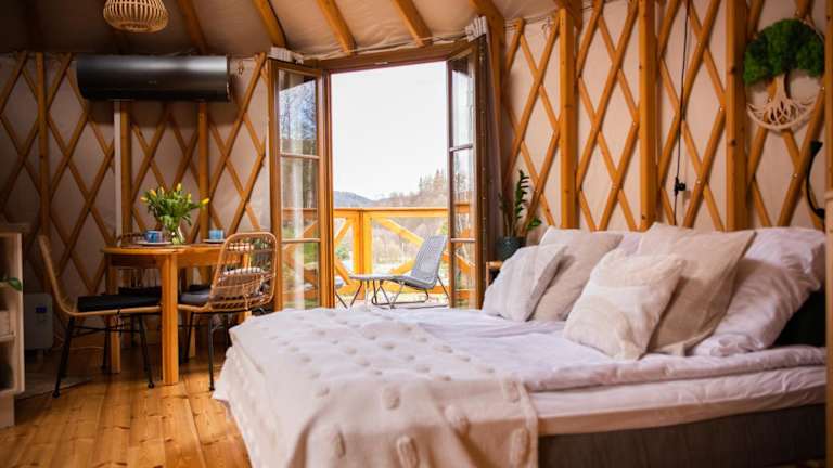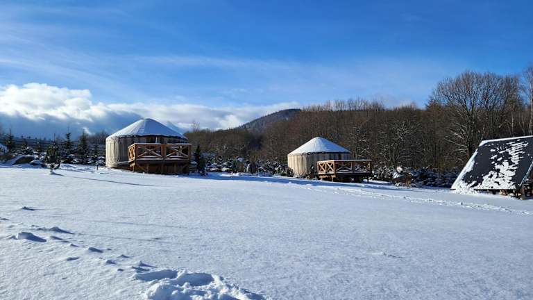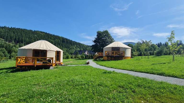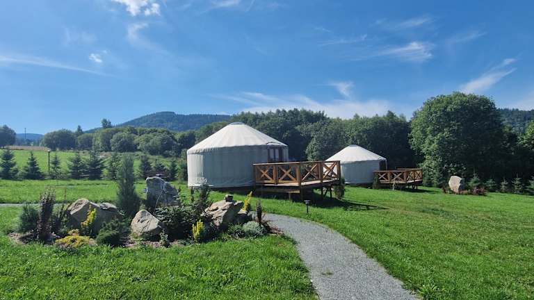 4 Żywioły -całoroczne jurty in Sudetach bietet ein heimeliges Ambiente mit einer Vielzahl von Annehmlichkeiten. Die Unterkunft umfasst einen Garten, einen Kinderspielplatz und eine Terrasse mit Blick auf die Berge. Zudem steht ein kostenloser Privatparkplatz zur Verfügung. Es sind keine Feiern wie Junggesellenabschiede erlaubt, um eine ruhige Atmosphäre zu gewährleisten.