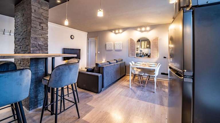 Die Ferienwohnung besteht aus 2 Schlafzimmern, einem Wohnzimmer sowie 2 Badezimmern mit Dusche und Haartrockner. Ein Kühlschrank und eine Kaffeemaschine sind ebenfalls vorhanden. Gäste profitieren von kostenlosem Wifi und einem TV. In der Unterkunft sind Nichtraucherzimmer vorhanden.
