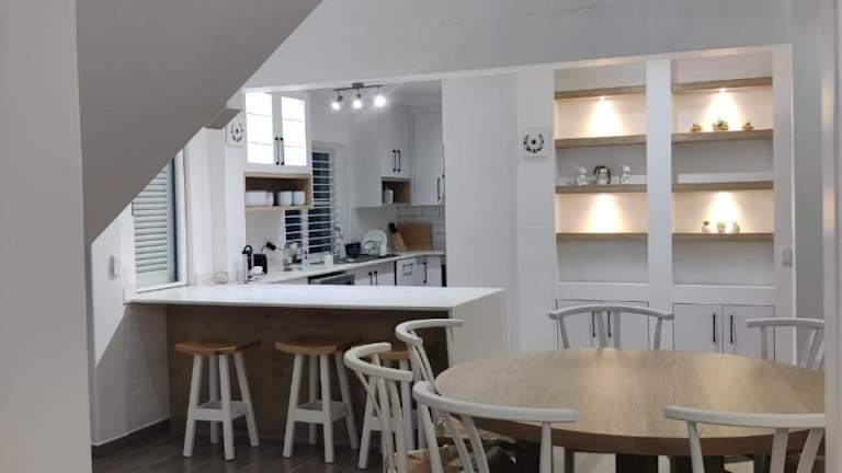 Das Ferienhaus bietet ausreichend Platz, bestehend aus 4 Schlafzimmern, einem Wohnzimmer und einer voll ausgestatteten Küche mit Kühlschrank und Wasserkocher. Zudem sind 2 Badezimmer mit Dusche und Haartrockner vorhanden. Bettwäsche und Handtücher werden bereitgestellt. Die Unterkunft ist klimatisiert und Nichtraucheroptionen sind verfügbar.