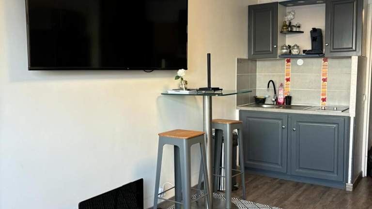 Die Ferienwohnung verfügt über ein Schlafzimmer und ist eingerichtet mit einem Wohnzimmer mit Flachbild-TV, einer voll ausgestatteten Küchenzeile samt Kühlschrank sowie einem Badezimmer.