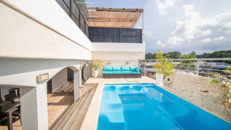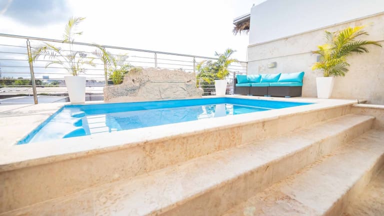 Die Unterkunft 4br Penthouse With Rooftop Pool In Sosua Strip bietet Übernachtungsmöglichkeiten mit kostenlosem Wifi und einer schönen Aussicht auf die Umgebung. Die Unterkunft verfügt über einen eigenen Pool und einen Balkon, ideal für entspannende Stunden.