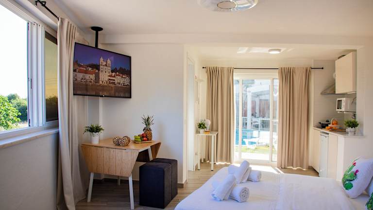 Jedes Zimmer in der Unterkunft 4Ever Palace Design&Nature ist mit einem Schreibtisch und einem Flachbild-TV ausgestattet. Einige Wohneinheiten bieten einen Blick auf den Pool. Alle Zimmer verfügen über eine Kaffeemaschine sowie Bettwäsche und Handtücher.