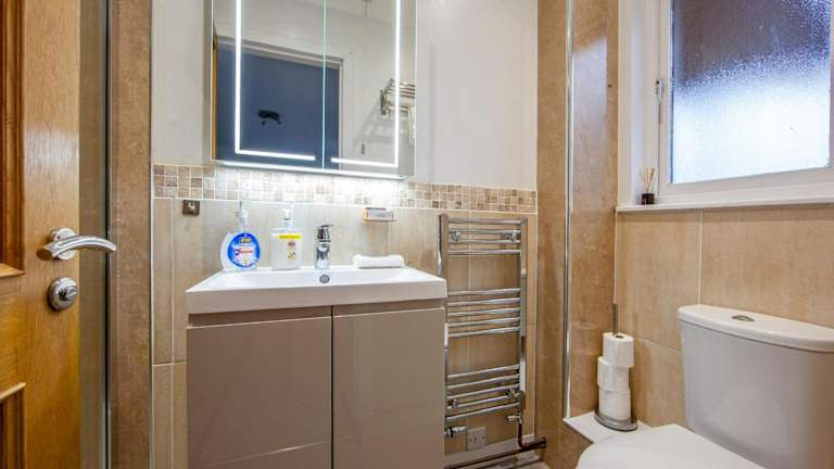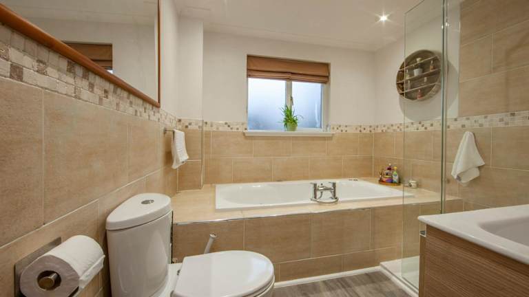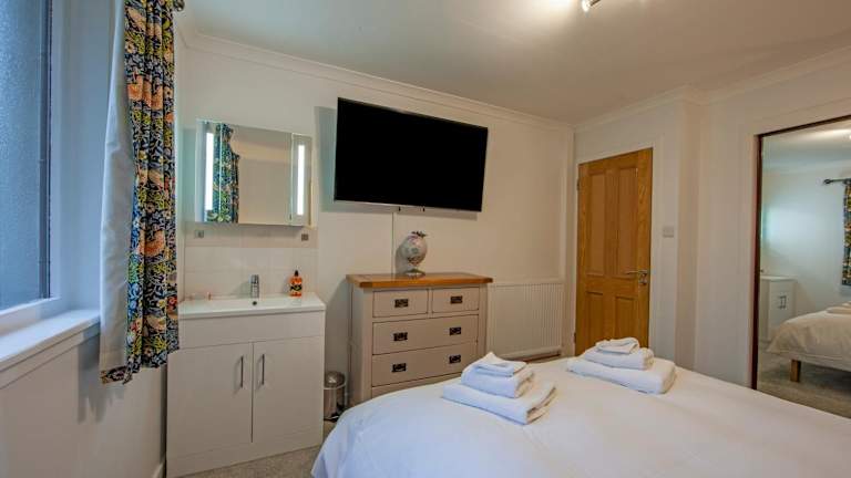 Die Lodge besteht aus 5 Schlafzimmern, einem Wohnzimmer und einer voll ausgestatteten Küche, die über einen Kühlschrank und eine Kaffeemaschine verfügt. Zusätzlich stehen 4 Badezimmer mit Dusche und Pflegeprodukten zur Verfügung. Handtücher und Bettwäsche werden bereitgestellt.
