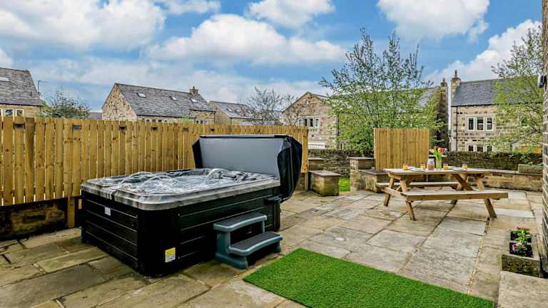 5 Bed in Bingley 91977 bietet Übernachtungsmöglichkeiten in einem Ferienhaus mit Zugang zu einem Whirlpool. Die Umgebung umfasst einen Garten und es sind kostenlose Privatparkiermöglichkeiten vorhanden.