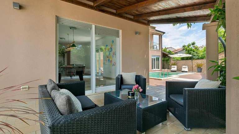 Die Unterkunft '5 Bedroom Cozy Home In Rovinjsko Selo' bietet Einfamilienhaus mit 5 Schlafzimmern und einem eigenen Pool. Es stehen ein Balkon und ein Garten zur Verfügung. Gäste haben Zugang zu einem Aussenpool und nutzen kostenloses Wifi in der gesamten Unterkunft. Das Ferienhaus ist klimatisiert und zudem als Nichtraucherunterkunft ausgewiesen.